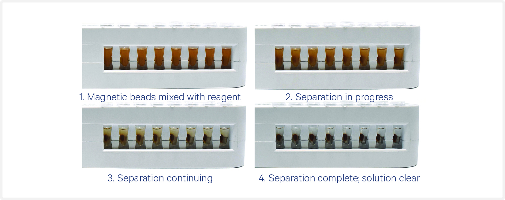 During magnetic bead based cleanup steps that specify waiting “until the solution clears”, visually confirm clearing of solution before proceeding to the next step. See image below for an example.
