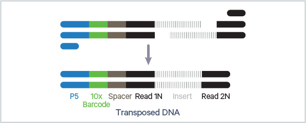 Barcoded transposed DNA and barcoded full length cDNA from poly-adenylated mRNA are amplified via PCR to fill gaps and for generating sufficient mass for library construction. The pre-amplified product is used as input for both ATAC library construction and cDNA amplification for gene expression library construction.